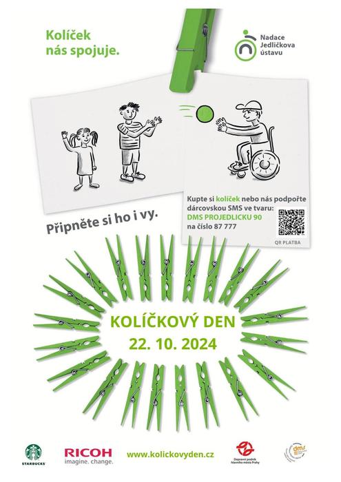 Dne 22. 10. proběhne v naší škole sbírka Kolíčkový den. Je veřejnou sbírkou Nadace Jedličkova ústavu. Cílem je vybrat finanční prostředky na podporu dětí a mladých lidí s postižením a také šířit osvětu pro lepší komunikaci s lidmi s handicapem. Hlavním cílem Nadace je maximálně podporovat mladé lidi se zdravotním postižením v samostatnosti, aby mohli vést co nejvíce plnohodnotný život. Nadace Jedličkova ústavu tak přispívá klientům např. na osobní asistenci, vzdělávací a volnočasové aktivity, kompenzační pomůcky a terapie, bezbariérovou dopravu či pracovní rehabilitaci.