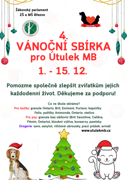 Úvod > Základní škola > Aktuality ZŠ > 4. Vánoční sbírka pro Útulek MB
