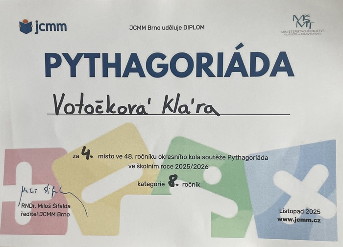 Dne 17. října 2025 se na naší základní škole konalo školní kolo matematické soutěže Pythagoriáda.
